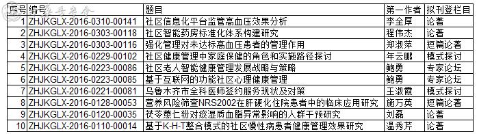 《中华健康管理学杂志》于2016年4月1日在中华医学会四楼会议室召开了审稿会,参会专家有解放军航空医学研究所武留信教授、北京大学医学部王培玉教授、中华预防医学会李明教授、首都医科大学李星明教授、阜外医院王增武教授、凤凰医疗集团张远春教授、上海交通大学鲍勇教授、广州医学院王家骥教授、解放军306医院刘彦君教授和北京回龙观医院邸晓兰教授等。经讨论,本次通过的稿件信息如下: